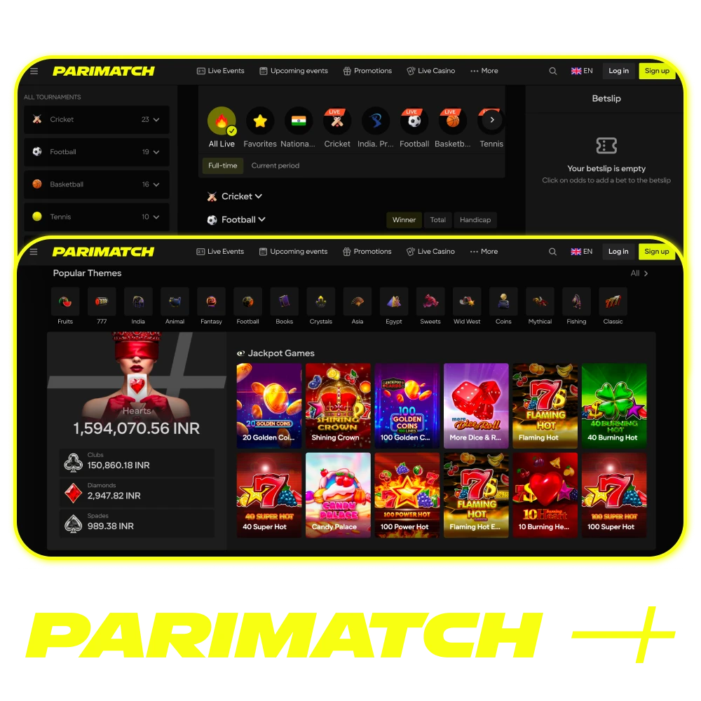 Parimatch covers sports betting and casino gaming under one roof. Indian players get access to everything they need: